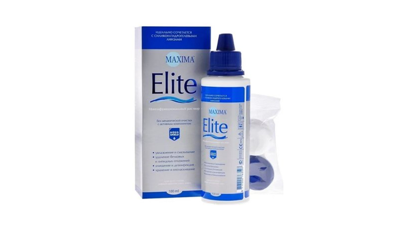 — Удобство использования: раствор MAXIMA Elite поставляется в комплекте с удобным и практичным контейнером, который обеспечивает безопасное хранение линз во время очистки и дезинфекции.